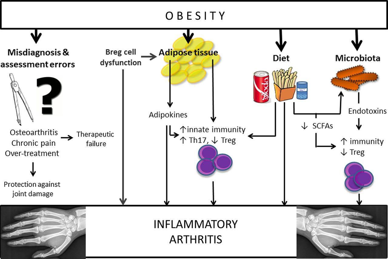 ОЖИРЕНИЕ СПОСОБСТВУЕТ УВЕЛИЧЕНИЮ РИСКА РАЗВИТИЯ РЕВМАТОИДНОГО АРТРИТА, РОСТУ ВОСПАЛЕНИЯ И ТЯЖЕСТИ ЗАБОЛЕВАНИЯ (Р)