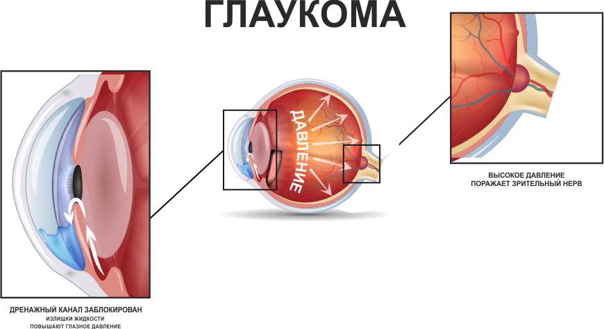Закрытие зрачка, в свою очередь, приводит к усилению давления в задней полости. Перенесение давления через стеклообразную капсулу на начальный отдел проводящего зрительного пути со временем вызывает отмирание зрительного нерва, а затем полную утрату способности к передаче импульсов в мозг. При затянутости этих процессов рост внутриглазного давления провоцирует образование скопления водянистой влаги камер у поверхности преломляющей линзы, дальнейшую деградацию последней и появление «затуманенности» зрения.