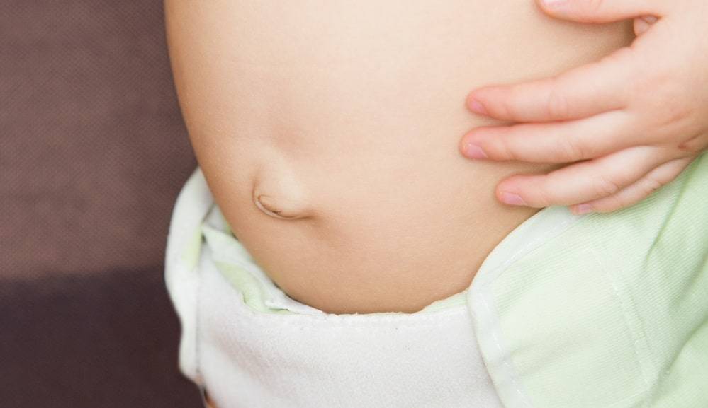 - В момент расслабления ребенка, проблема незаметна, но как только он напрягается — выпячивание возвращается.
