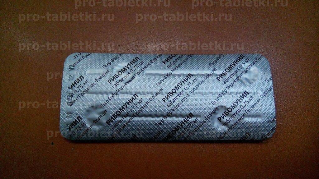 Фотография блистера таблеток рибомунил 0,75мг (вид спереди)