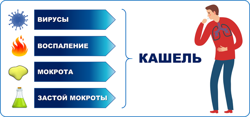 Начиная с момента проникновения возбудителя в организм, развивается воспаление слизистой оболочки респираторных путей, что и провоцирует появление кашля.