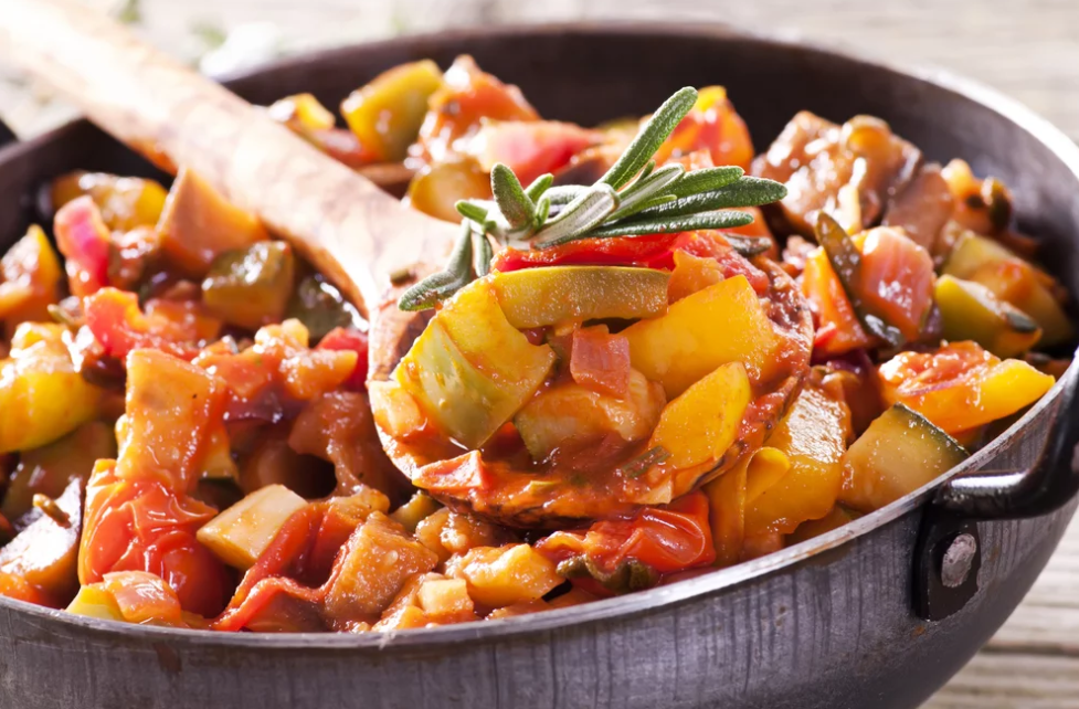 - Овощи добавить в мультиварку и выбрать пункт «Овощное рагу». Также можно тушить на кастрюле.