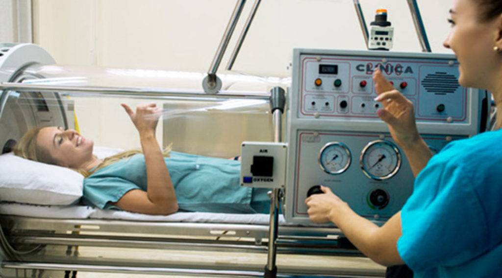 Гипербарическая оксигенация – это способ повысить содержание кислорода в крови и других тканях организма путем вдыхания его под повышенным давлением в барокамере. Недостаток этого газа тормозит процессы получения энергии, обмена веществ в организме.