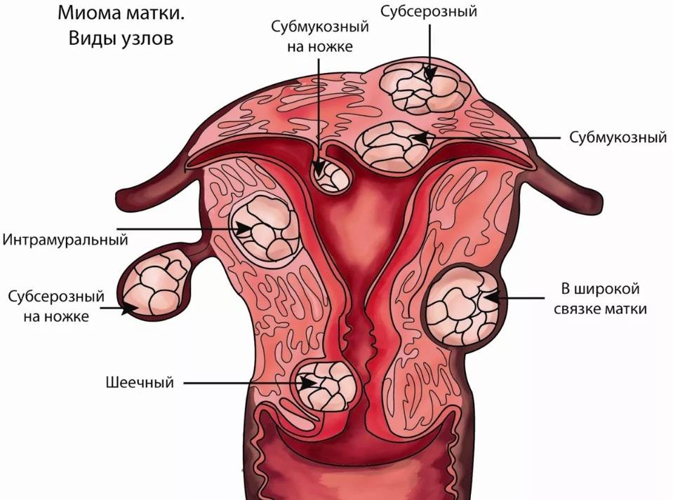 - Образование в матке полипов или миом – доброкачественных образований, имеющих форму узла.