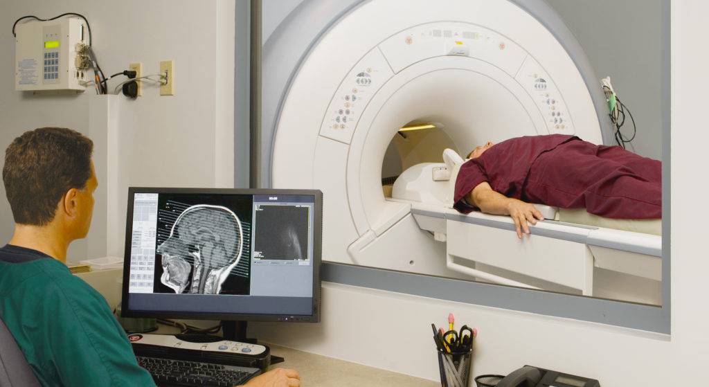 Обследование начнется после того, как пациента поместят внутри томографа, врач же, как уже было сказано ранее, в этот период времени будет находиться в соседнем кабинете, откуда он будет контролировать процесс. Если процедура проводится ребенку, то специалисты иногда допускает кого-нибудь из родителей присутствовать рядом, ведь в ином случае в процессе ребёнок может просто утомиться и начать двигаться.