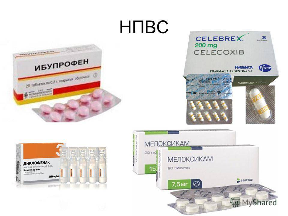 нестероидные противовоспалительные средства. Для борьбы с болью пациентам на протяжении 1-2 недель вводят лекарства из группы НПВС. Клинические исследования подтвердили, что они обеспечивают гораздо лучший эффект, чем плацебо;