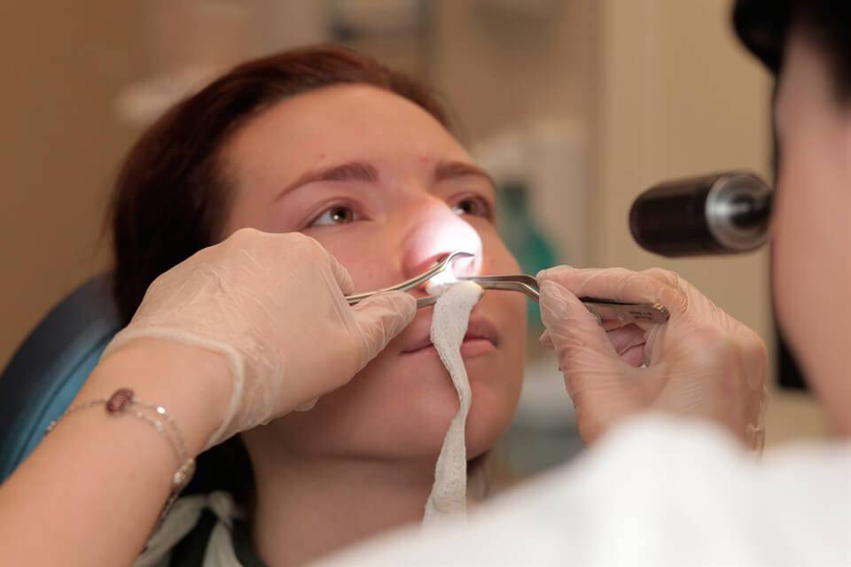 Для защиты затампонированных каналов, на нос пациента накладывают повязку пращевидного типа. Показатели эффективности выполненной тампонады – отсутствие даже незначительного выделения крови наружу и по задней стенке глотки. Удаляют тампоны только по показаниям, процедуру выполняет ЛОР-врач. Передняя тампонада предполагает блокирование каналов на 1-2 суток, задняя – до 7-9 суток.