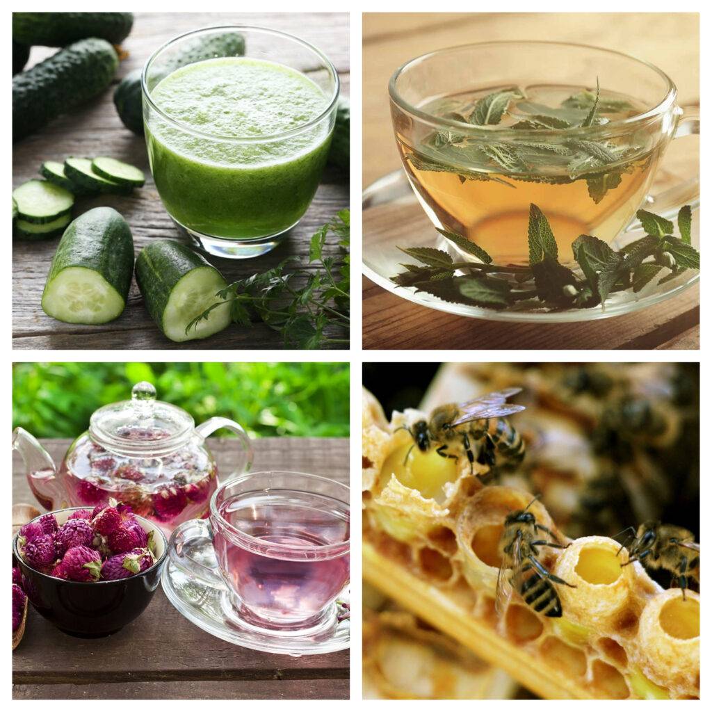 Чай из душицы готовят, заваривая несколько столовых ложек кипятком. Напиток можно принимать по одной чашке 2-3 раза в день. Настойки из шалфея и медуницы готовят сходным образом, заливая столовую ложку сырья 400 миллилитрами кипятка. Принимают по одной четвертой в течение суток.