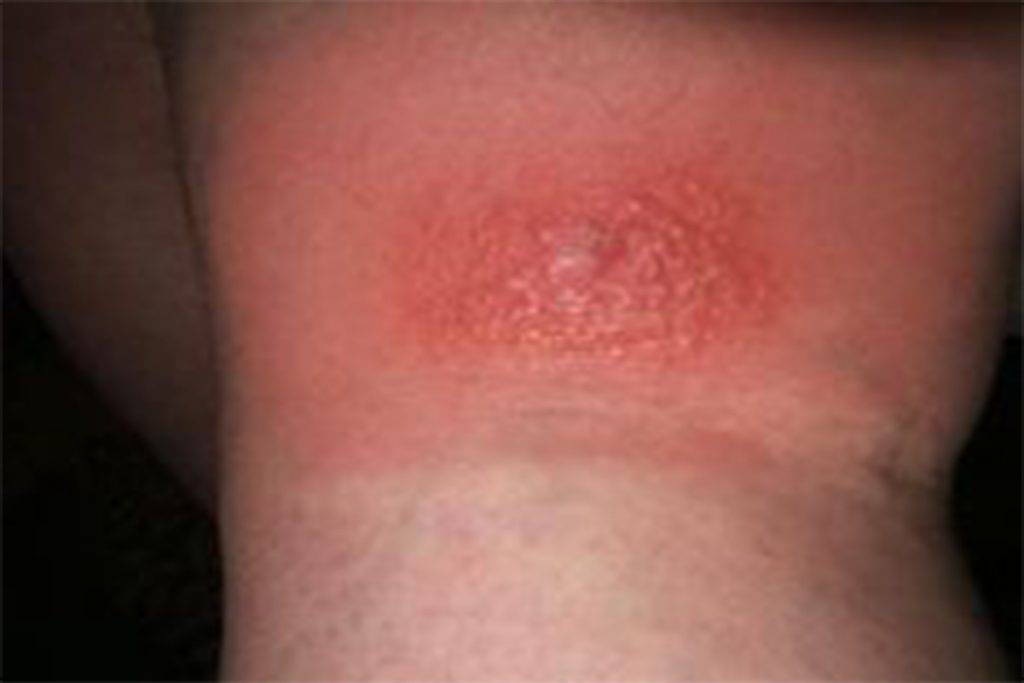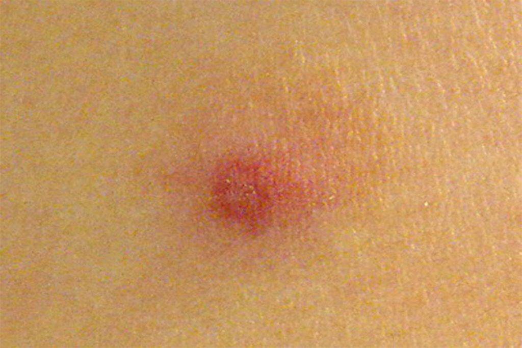 Место укуса выглядит покрасневшим – это является нормальной аллергической реакцией. Однако красное пятно, разросшееся до 12 см, может быть признаком болезни Лайма. Оно может проявиться как через 3 дня, так и через неделю.