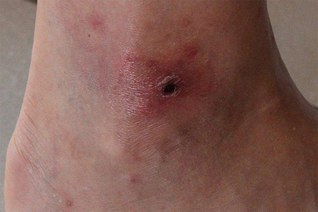 Неизменный симптом лихорадки – пятнисто-папулезные высыпания на коже, охватывающие все тело. Также в самом начале болезни у больного отмечается покраснение кожи и отеки лица. На месте укуса можно наблюдать гиперемию незначительного размера, которая в дальнейшем перерастает в язву, увеличенную втрое. Через некоторое время эти признаки дополняются ухудшением работы внутренних органов. Снижается кровяное давление, появляется тахикардия, поражается ЦНС, может развиться бронхит и пневмония.