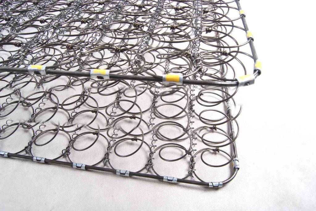 Первыми появились матрасы типа «боннель» с зависимым блоком в виде шеренги стальных двухконусных пружин диаметром 6-10 см, соединенных тонкой проволокой. В среднем на один квадратный метр спального места приходится 100-150 четырех витковых пружинок.