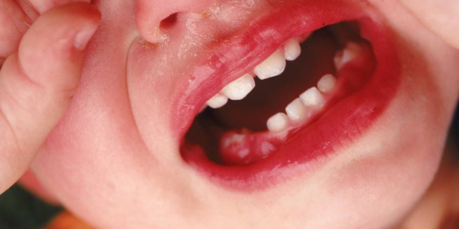 Инфекционный гингивит встречается у детей часто. Особенно ему подвержены малыши в период прорезывания зубов, когда инфекция попадает в рот с погремушками и прорезывателями.